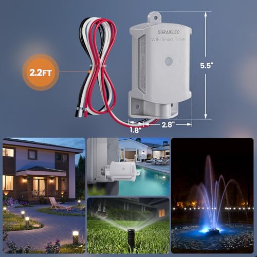 SURAIELEC 15 AMP WiFi Smart Timer Switch for Outdoor Electrical Boxes, 120V WiFi Pool Timer, for Waterproof Outlet Junction Box, Pool Light, Driveway Lighting, Security System, Holiday Decorations