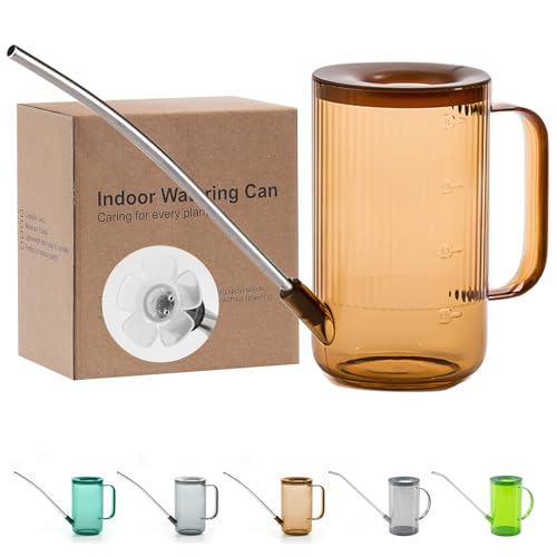 Tennedriv Green Long Spout Watering Can Indoor, Small Watering Cans for House Plants, Flowers, Succulents (Brown)