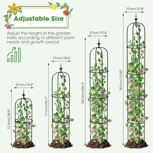 - ?GARDEN TRELLIS ONGOING SUPPORT?Adjustable Height (73 inches) is the perfect size to work as a trellis for climbing plants outdoor. This garden trellis can be adjusted by increasing or decreasing the connecting rings based on different plant heights, giving a more adaptable space for plants to grow
