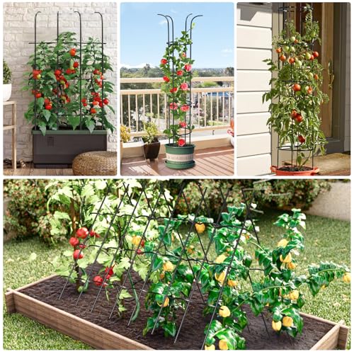 - ?RUST-PROOF?The garden obelisk plant support consists of metal poles with a plastic casing that is rust-proof, the plant support trellis resists sun damage and fading, and is gentle on plant stems. Including an attachable arm to complete the tomato seeder. The vertical tomato obelisk support for indoor gives sturdy support for flowering vines, vegetables.