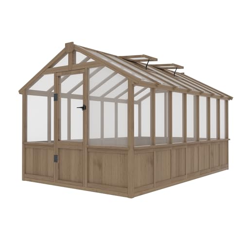 VEIKOU 8’x14’ Greenhouses for Outdoors, Walk-in Wood Greenhouse with Cedar Frame & Adjustable Vents, Garden Green House with 6MM Thick Polycarbonate Panel for Outside, Backyard, Light Brown Mocha