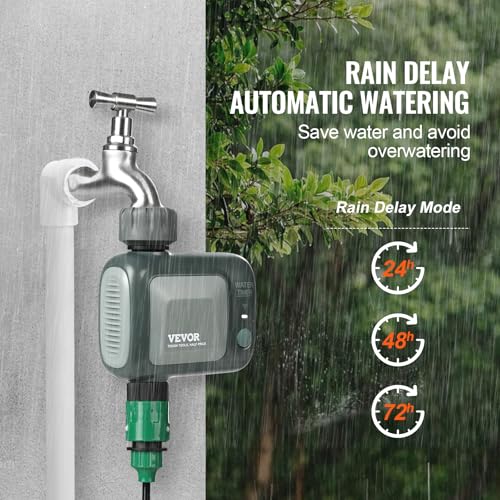 - Rain Delay Mode, IPX6 Waterproof: Our Wi-Fi smart watering controller features a rain delay mode that helps you conserve water by postponing your schedule for 24/48/72 hours, ensuring your plants aren't overwatered during rainy periods. Experience leak-proof efficiency and water conservation with IPX6 waterproof rating. The built-in filter effectively filters sediment and particles from water, withstanding high water pressure from 7.25 psi to 120 psi.