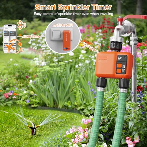 WiFi Water Timer for Garden Hose with 984 ft Range,Smart 2- Zone Sprinkler Timer, APP & Remote Control, Voice Control,Rain Delay, Manual Mode Sprinkler System, Lawn Sprinklers for Yard Large Area