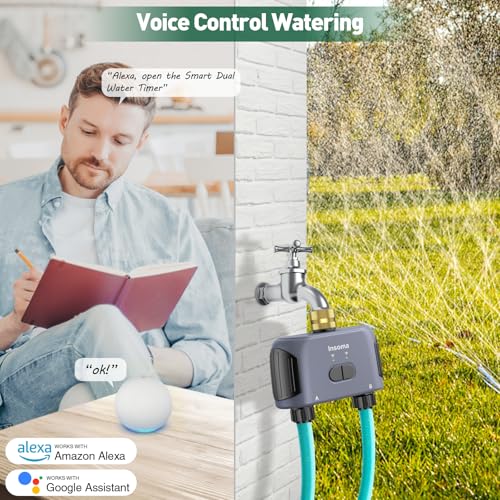 - [Voice Control by Alexa]: The smart sprinkler timer can work with Alex and Google Assistant, using simple voice commands to turn on/off the water timer. Make use of voice control to manage your lawn watering.