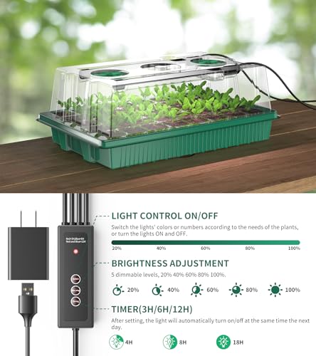- ?Upgraded Grow Lights for Optimal Growth?The 4 full spectrum strip grow lights of this seed starting trays mimic natural sunlight, promoting vigorous growth. With adjustable brightness and timer settings, you can tailor the lighting to suit the stage of your seedlings' growth. Grow fresh basil, juicy tomatoes, or stunning flowers right from the comfort of your home–rain or shine.