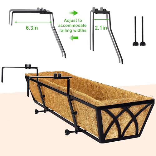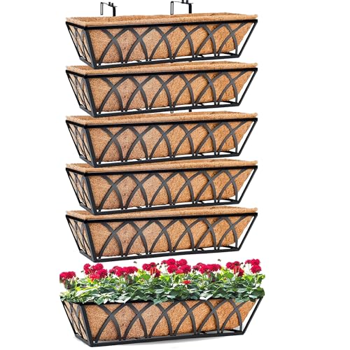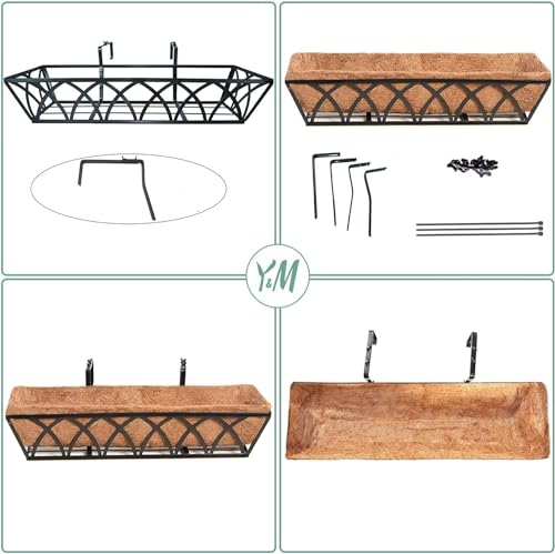Y&M 24 Inch Fence Metal Hanging Flower Planter Window Basket Deck Railing Planter Boxes for Outdoor Garden Lawn, Window Deck with Coco Liner,6pcs